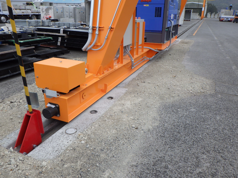 【発電機搭載】 発電機によって可動するため、電力供給ケーブルが無く、クレーン下への侵入が容易です。 (長野県の事例) (群馬県の事例) 所在地 長野県・群馬県 カテゴリー: OK式レールベース、施工事例。 « 新しい記事前の記事 »