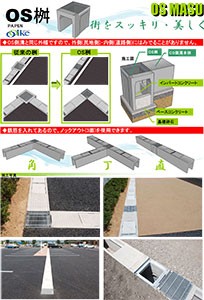 OS側溝接続桝。OS側溝と同じ外幅です。