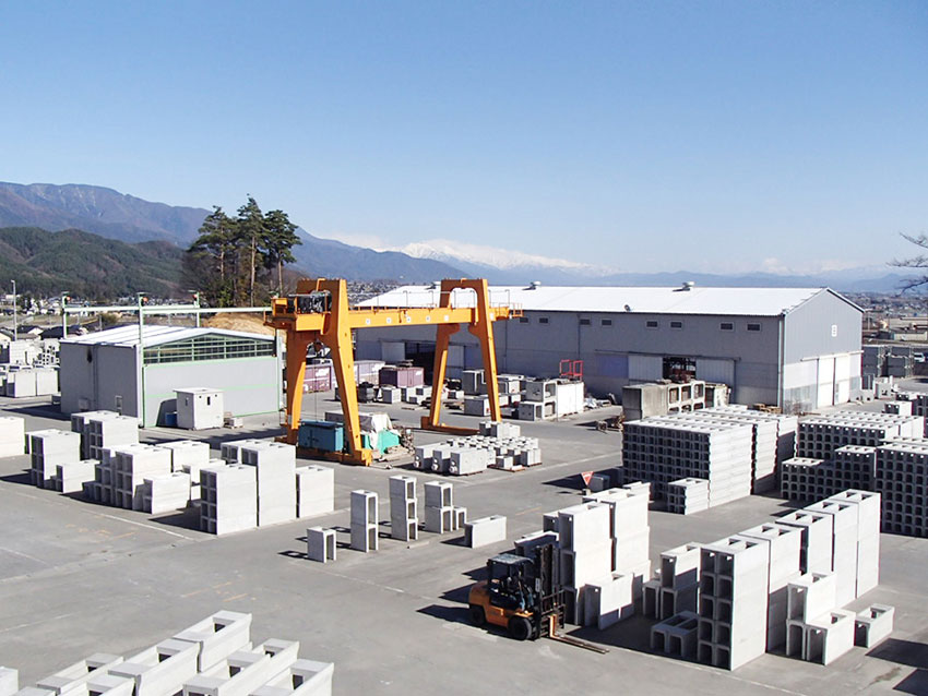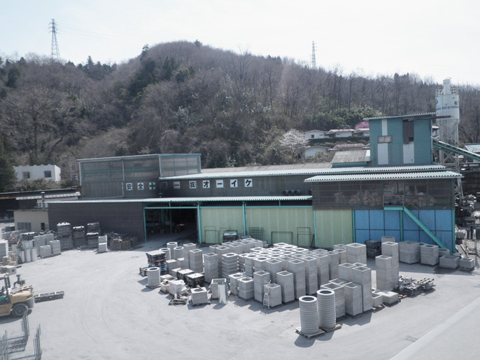 - 道路用、河川用、C.C.BOX、情報BOX、環境製品、ハンドホール、照明灯用ポール基礎、OKパーキング、PVA浸透桝、油水分離槽、防火壁、各種ガソリンスタンド用品等、公衆トイレ、消化槽、残存型枠、花壇ブロック、大型積みブロック、クレーン基礎