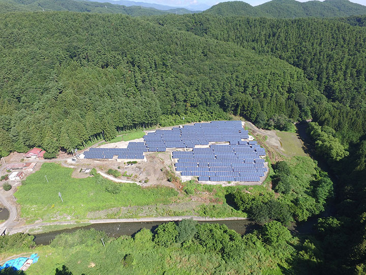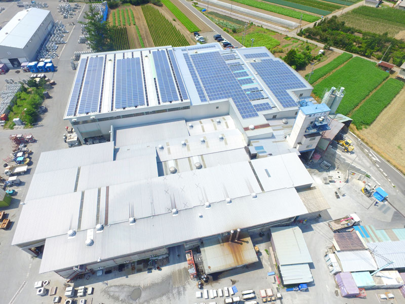 平成26年に本社工場の屋上に発電容量0.8MWのソーラーパネルを設置して以降、平成27年には1.4MWの安曇野発電所、翌年には1.5MWの今井発電所と3ヵ所の発電施設を稼働させました。令和2年現在で6ヵ所の発電施設が稼働中です。