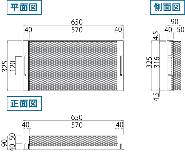 地表に近い中間スラブの開口部に装着することにより、目視点検やごみの清掃などの維持管理が容易に行えます。また、飛来落下防止を図る為に必要な強度を有します。