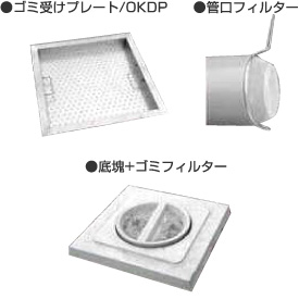 雨水浸透桝である、OK式浸透ザール(OKZ)の中間スラブに設置して、落葉や大きなプラスチックごみ(ビニール袋、ペットボトル等)を捕捉するフィルターです。