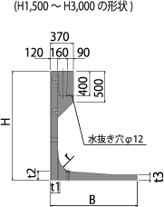 | H | B | t1 | t2 | t3 | r | r’ | h | 常時 | 衝突時 | kg | |