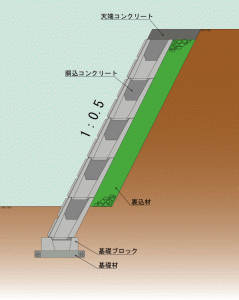 胴込めコンクリートを打設する事により、堅固な練積み擁壁を構築できます。