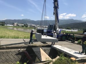 車両走行及び歩行者が安全に通行できるRC構造の簡易床板と基礎台です。